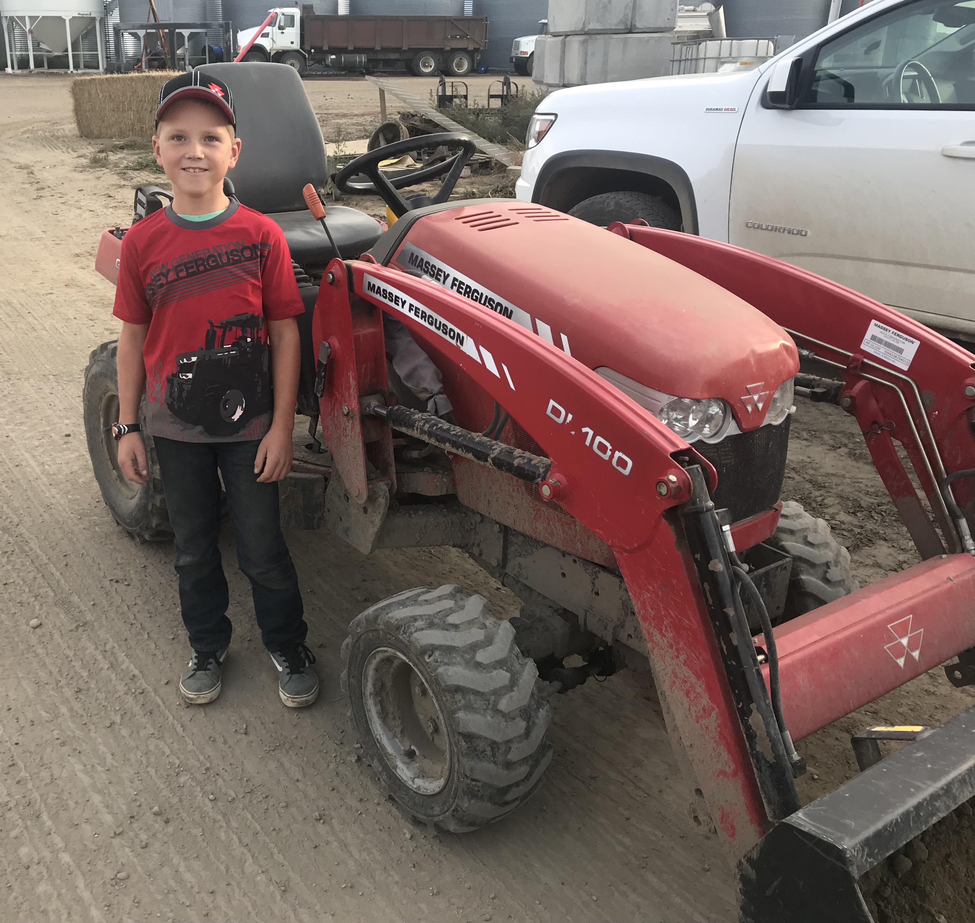 It’s always a pleasure to see the younger generation excited about farming. Nick here smiled for the camera next to his Massey tractor (which he maneuvers around like a champ on) when Brendon brought him a shirt from his travels to France for a farm show.