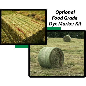 Available for both small and large square balers, the marker kit will put a food grade stipe on any bale that reads higher than a set moisture level. As the bale exits the chamber it is clearly marked so the operator can identify high moisture bales easily. The dye mixes with water and can be applied on 60 bales.